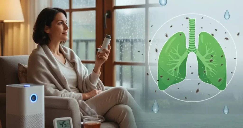 2. Aumento de Ácaros del Polvo: La humedad relativa alta (idealmente, debe mantenerse entre el 30% y el 50%) favorece la reproducción de los ácaros del polvo doméstico, otro de los alérgenos más comunes y problemáticos para los asmáticos.